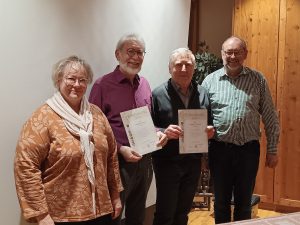 Auf dem Bild von links nach rechts, Brigitte Murla (Kreisvorsitzende) Gerd Buchholz (Kassier), Ludwig Litzlbeck, Heinz Schoder (1.Vorsitzender)