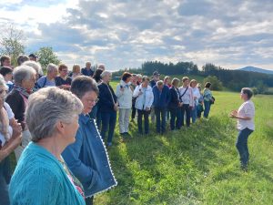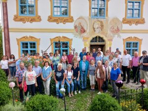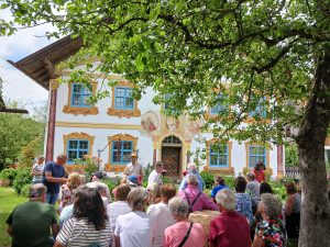 Nach wetterbedingter Verschiebung fand der Vereinsausflug, der vom 1. Vorsitzenden Heinz Schoder organisiert wurde, am vergangenen Samstag den 08.06.2024 statt. Das Wetter hatte diesmal ein Einsehen, so dass der mit viel Engagement angelegte Selbstversorgeracker von Leni Kühn in Aidling besichtigt werden konnte. Für Leni Kühn ist der Garten für mehr als nur die Erzeugung von Lebensmitteln da. Er bereichert die Seele, erdet die Gefühle und sensibilisiert die Wahrnehmung.