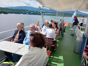 Bei herrlichen Wetter machten wir uns per Schiff auf dem malerischen Staffelsee nach Uffing auf wo wir im Seerestaurant Alpenblick zu Mitttag gegessen haben und den herrlichen Alpenblick genießen konnten.