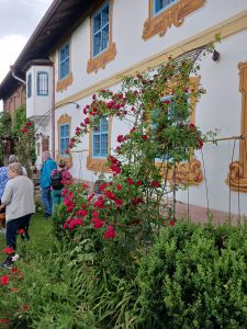 MIt dem Bus ging es dann weiter zum Freskenhof in Obereglfing wo wir den 4000 m² großen Privatgarten der Familie Mack, der nach bayerisch-fengshui angelegt wurde, besichtigten. Zu erleben war ein terrassenförmig angelegter Garten mit vielen Erholungsbereichen der aber auch ein Nutzgarten ist. Ein Gartenrundweg verbindet alle Elemente mit Obstanger, Gemüsegarten, Steingarten, Spalieranlagen, Beerenhecken, Natursteinmauern sowie vielen schönen und liebenswerten Details.